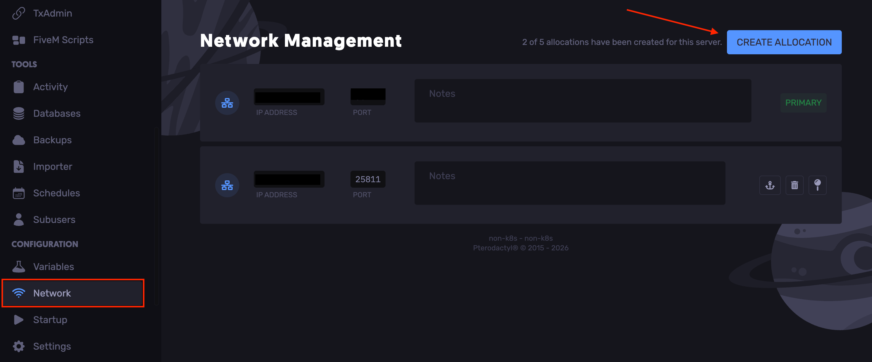 Click Create Allocation and note the numbers in the Port section of the allocation you just created.